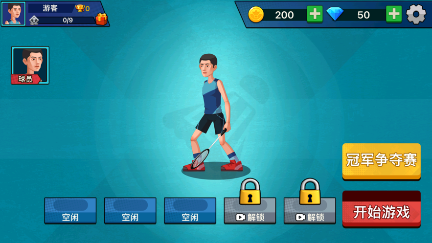 2.简洁大方的UI设计,清新自然的美术风格,仿佛置身于羽毛球球场中。