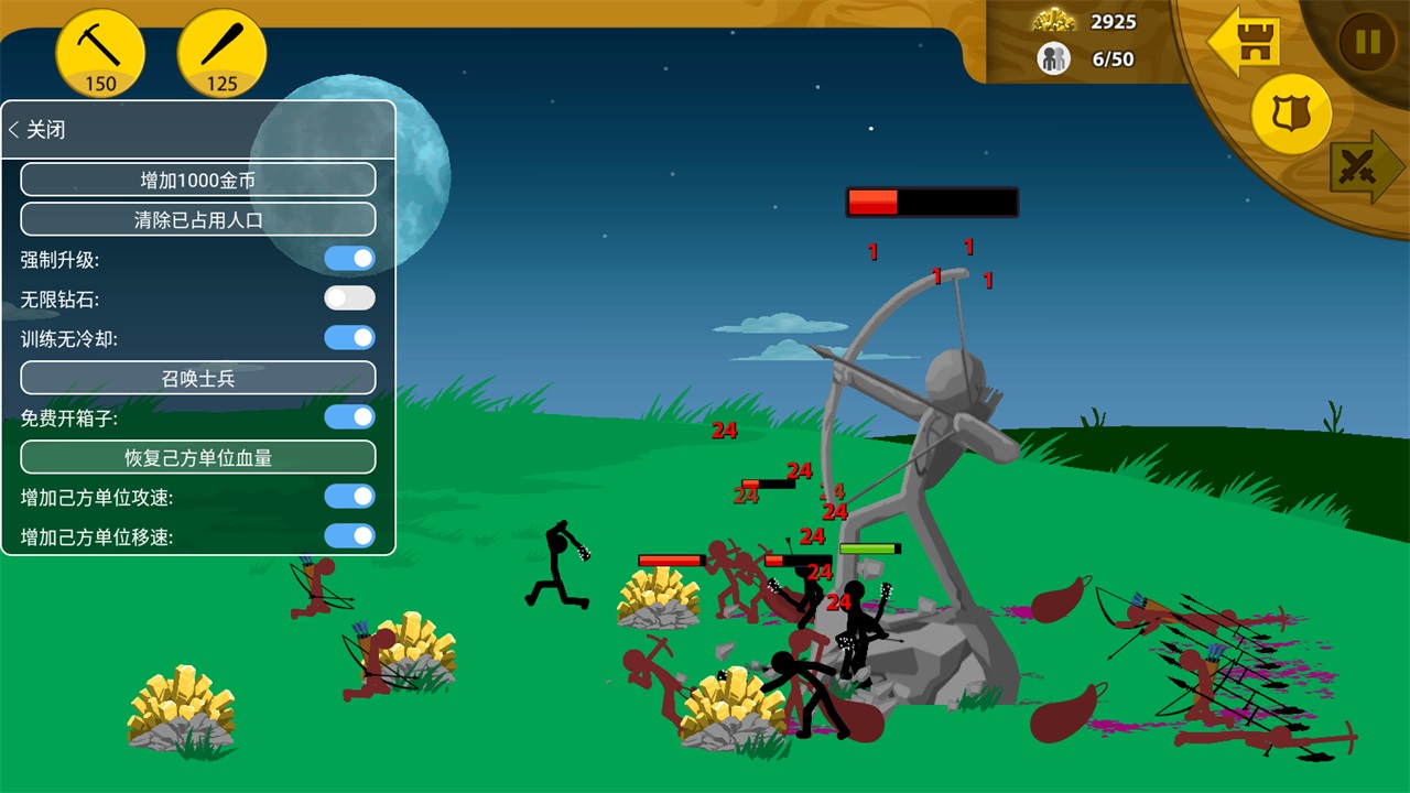 《火柴人战争遗产fm魔改版》是一款策略塔防类射击手游。火柴人战争遗产fm魔改版中文中玩家是一名指挥官,通过指挥自己的部队与敌人展开激烈的战斗。玩家可以通过建设基地、招募火柴人士兵、升级武器和技能等手段来提升自己的部队实力。