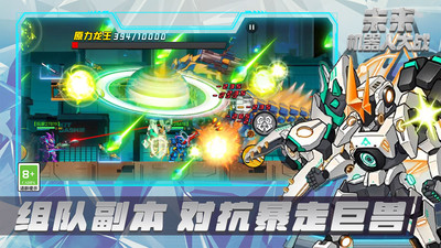 《未来机器人大战》横版机甲格斗游戏,游戏主要以机甲战斗为主,最炫酷的是合体系统和武器系统,利用不同机甲碎片合体合成全新机甲,任你自由DIY,搭配强大的武器系统,出战对手,赢取机甲越多你积分越高。