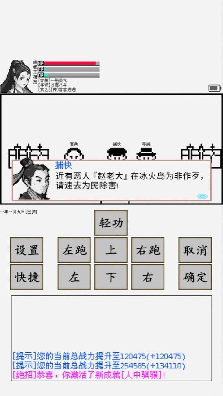 黑白像素高自由度武侠主题文字冒险游戏。