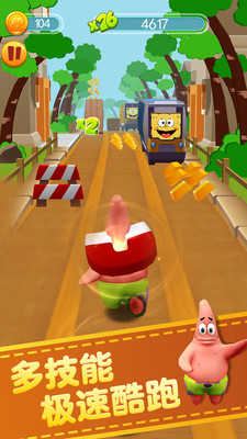 《海绵宝宝官方正版手游》是一款由国外著名喜剧动画片《海绵宝宝》授权引用改变的角色跑酷手游。从画面剧情到角色完美还原,游戏中,海绵宝宝、派大星、章鱼哥等动画片里这些大家耳熟能详的角色都会悉数登场,这里,它们不仅会展开精彩的跑酷冒险之旅,上演一出出“蟹堡王秘方之争”的闹剧,还汇集了有意思的玩法和系统!