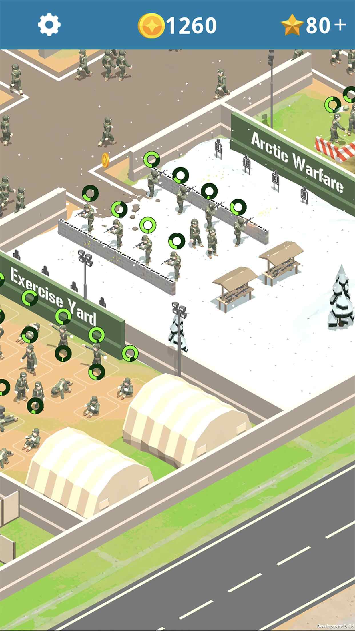 你可以升级所有训练区的数值、速度、容量和队列规模。虽然过程如同过山车般起伏跌宕,但懒惰的学员必将遭到淘汰——你会爱上发展和升级你的军事基地。