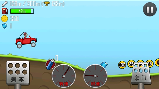 1.游戏的玩法通俗易懂到了极点,只有‘‘油门’’ ‘‘刹车’’两个按钮,油门自然就是加速了,刹车就是减速,长按可以后退,如果在空中的话两个按钮随便一个都能空翻,这种简易的操作,两个按钮包含了许多的内容,能让游戏的可玩性提高一大截。