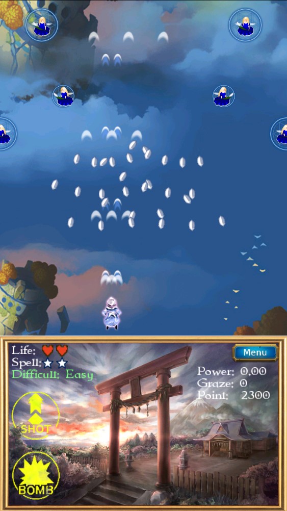 东方幻灵梦是东方弹幕游戏的同人作品,仍然是高挑战度的弹幕关卡射击,还是那些弹幕游戏爱好者熟知的角色们,这次是全新的故事和地点,巫女灵梦责无旁贷,出发吧,东方众!一款同人弹幕射击游戏,沿袭了东方系列STG的传统玩法:华丽满屏的弹幕 + 优美激昂的BGM,全新的手游操控方式,全新的弹幕与故事。在东方的幻想乡之上,灵梦,魔理沙,妖梦,幽幽子和其她小伙伴们展开了全新的冒险。从天空城堡到永夜之城,新的异变再一次出现。妖怪们为了一己私欲又一次破坏了幻想乡的平衡。巫女灵梦责无旁贷,邀请伙伴们去一探究竟。