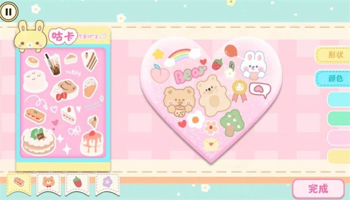 DIY咕卡大师是一款贴纸类休闲解压游戏。在本游戏中,玩家需要在左边所有的贴纸处选择需要用到的贴纸来按照右上角的目标贴纸来在屏幕中间依次序来完成关卡的挑战任务。玩家可以在温馨的画面中潜移默化的治愈自己。