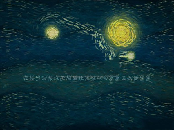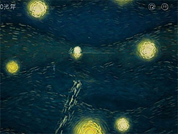 1、以画家梵高的作品星空作为游戏背景,在星星中不断穿梭前进,十分震撼。