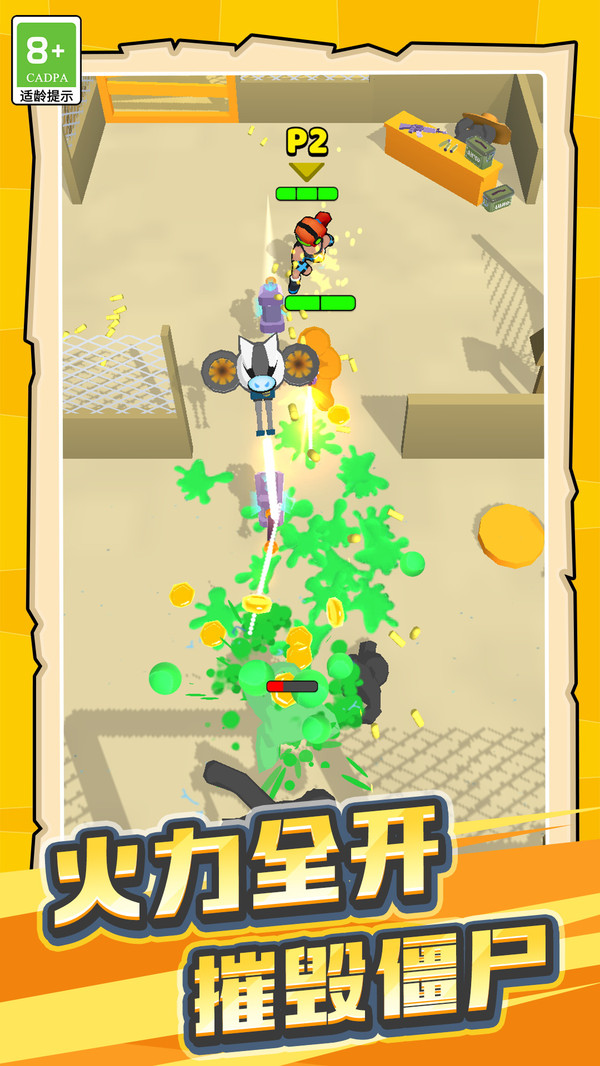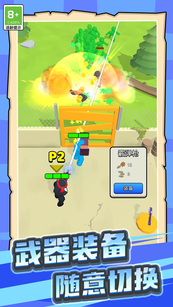 2.每一个关卡都会有超多的僵尸,您需要选择不同武器,让自己顺利将其击败。
