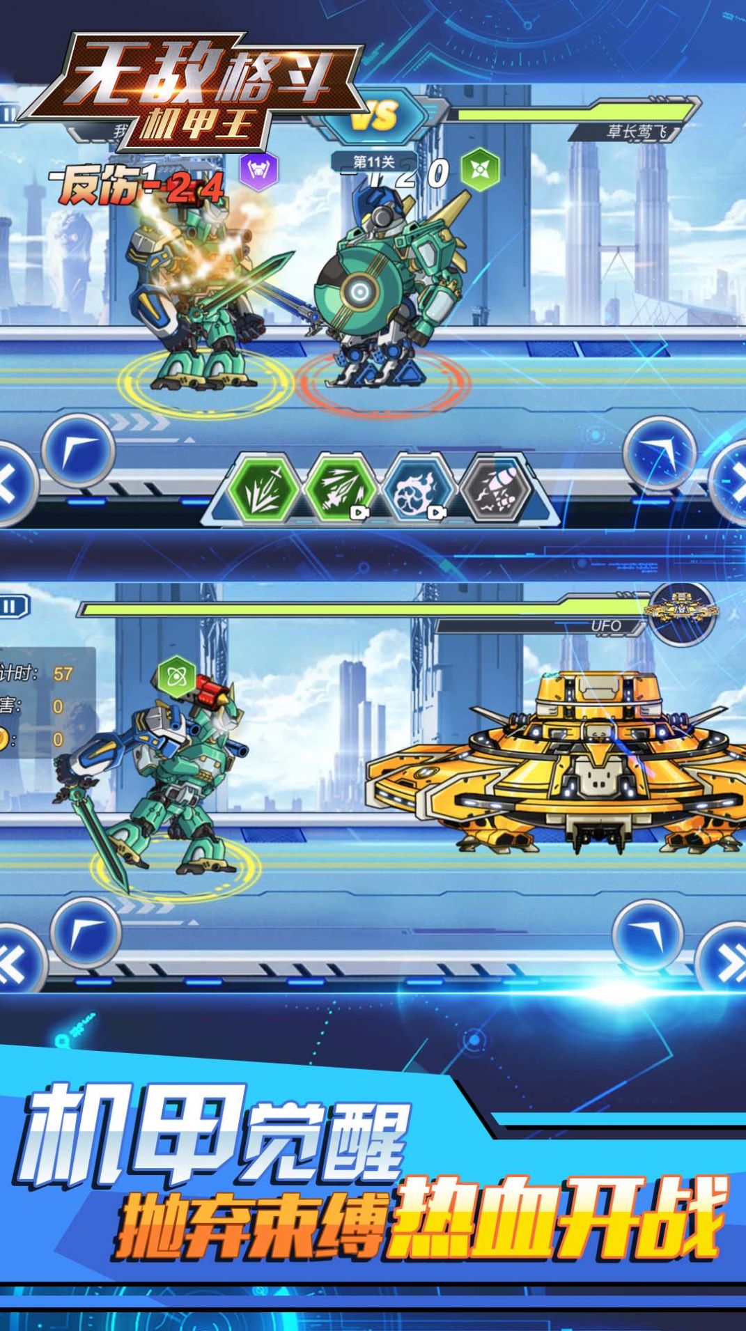无敌格斗机甲王是一款休闲闯关类型的游戏,玩家将在游戏中操控机甲来展开动作格斗。游戏中有着非常多的机甲,这些机甲有着各自独特的技能,玩家可以自由的进行搭配。游戏里还有着非常多的游戏模式,冒险模式、竞技模式、挑战模式等等。游戏里玩家还可以组队一起进行对抗。