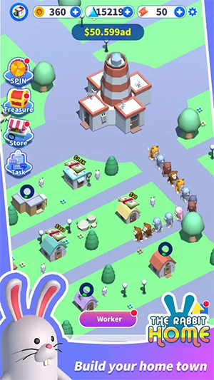 兔子之家这是一款模拟经营类休闲游戏。玩家将在这里从零开始建造一处城镇,使用启动资金来建造一些基础的设施,吸引更多的小动物来这里定居纳税,不断的完善各类措施,健全保障制度,使得居民能够在这里安居乐业。