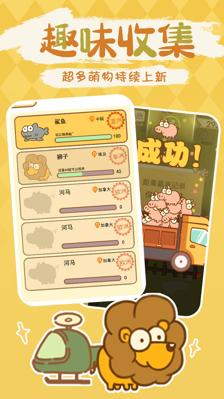 1)可爱的卡通动物收集,每只动物都有自己独特的外貌和个性特点,让玩家享受到无穷的惊喜和乐趣。