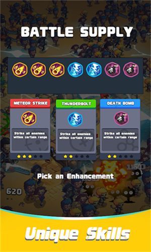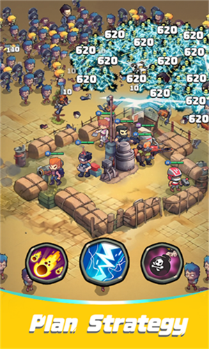 迷你闪电战是一款美漫风格的闯关类休闲策略游戏。在本游戏中,玩家将从系统提供的诸多不同特点的角色之中选择自己喜欢的来进入到第一道关卡之中,在一场场的战斗中熟悉该角色的特性与技能,在合适的时机释放出来,创造一定的优势,积累你的优势来打倒敌人。
