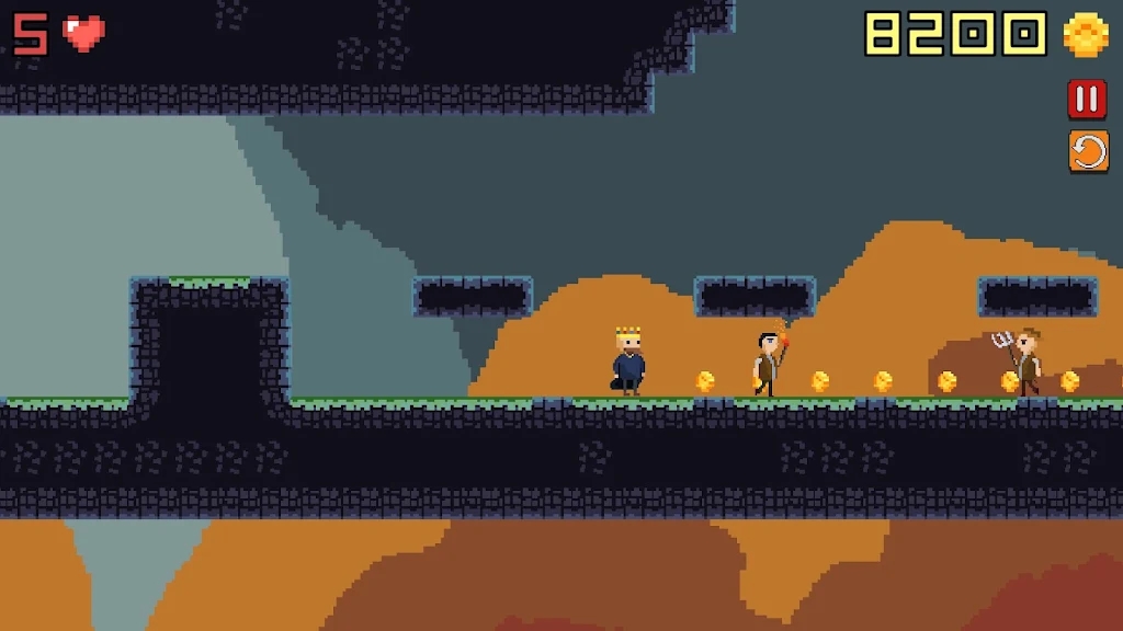 国王的像素城堡游戏是一款像素风格的横版平台跳跃冒险类休闲闯关游戏。在本游戏中,玩家将扮演成为一名技艺精湛的勇者,为了营救公主,而进入到国王的城堡之中与各种怪物战斗、越过各类危险的陷阱。玩家可以在场景之中收集不同的武器和技能,根据敌人的类型恰当的组合自己的武器技能搭配,更加轻松的战胜对手。