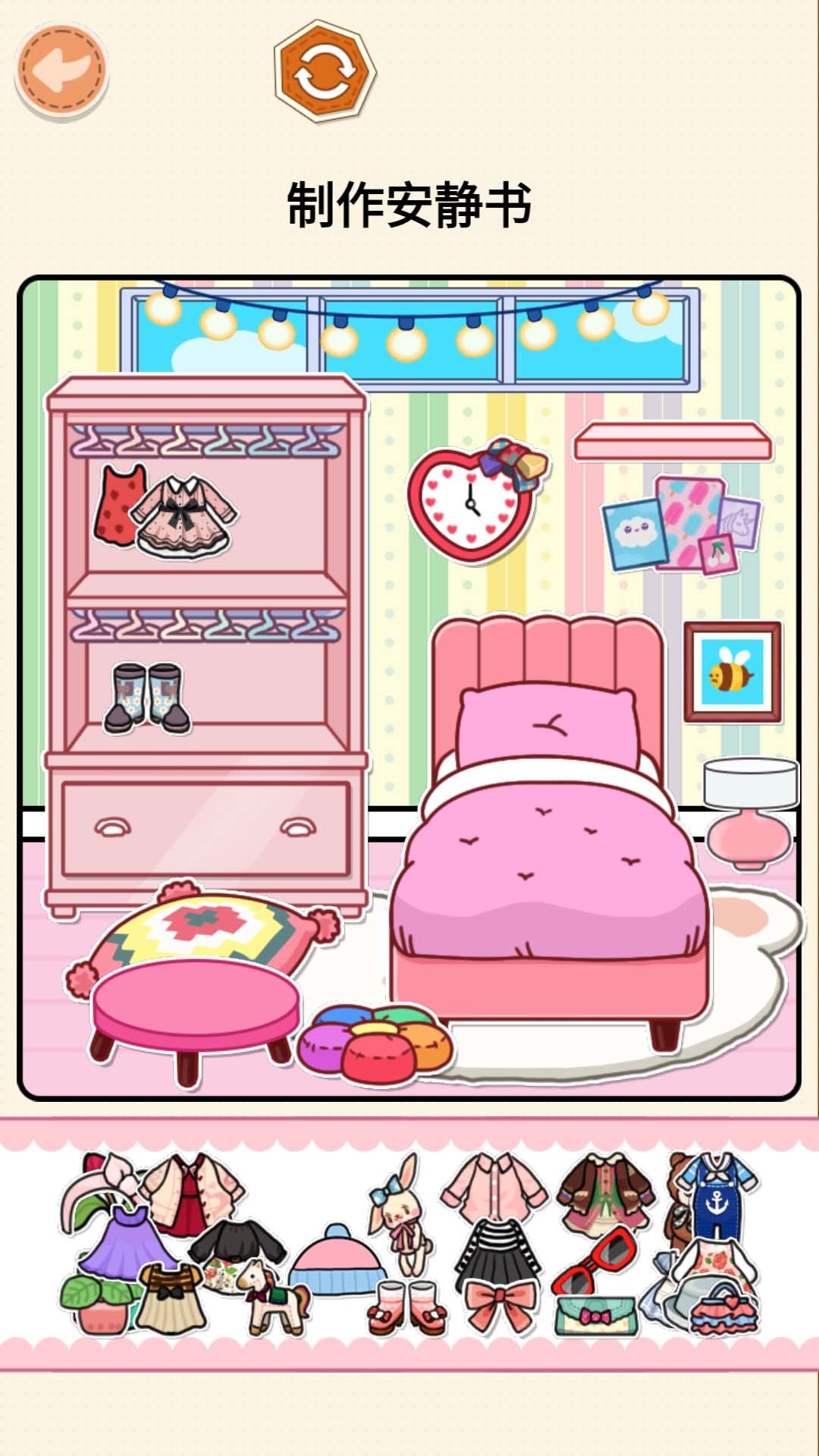 你能够在游戏中尽情发挥自己的构思,用心爱的贴纸来装修书本、信封、封面、标签等,打造自己的专属文具。