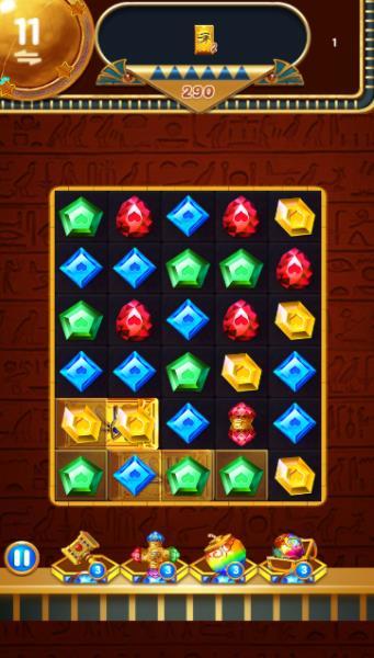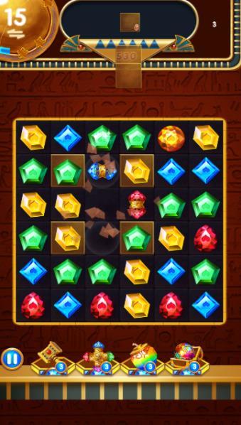 2、独特的消除方式,通过消除宝石解锁道具,解决困难和危险,让你在游戏中体验埃及的神秘冒险。