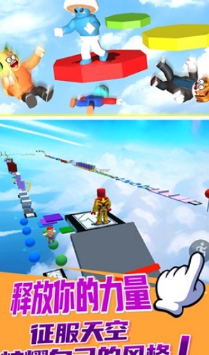 1、天空跑酷游戏,充满挑战和趣味,需要控制积木英雄上下跳跃,躲避各种障碍物。