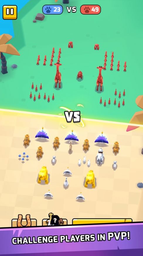 动物大战模拟器是一款趣味动物大战模拟类休闲策略游戏。在游戏中,玩家可以在场景之中组建并指挥自己的动物军队来与地方的动物阵容进行一场趣味战争。了解每一种动物的特性与克制关系,来指挥自己的动物大军进行有针对性的攻击,最大程度的对敌方造成伤害。