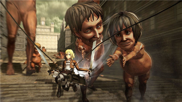 2、独特的战斗技巧需要掌握,立体机动装置任意使用,让你在空中奋勇厮杀。