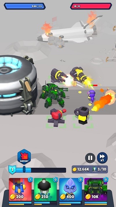 训练一支庞大的军队,从中世纪的男人到世界大战的坦克!一路肆虐未来时代的机器人战士!有许多不同的单位可以在7个完全独特的战争时代进行训练。您可以使用29种类型的单位,例如突击斯巴达战士、阿努比斯战士、法师、骑士、步枪手、大炮、手榴弹士兵、半机械人等等!如果您认为最好的攻击是坚固的防御,请尝试堆叠可以击倒2265敌人的塔排!是的,我们还有着名的鸡塔要建造!
