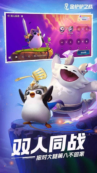 金铲铲之战单机版无需联网玩家可以自由体验,经典的自走棋玩法,游戏的画面精致生动,可以营造出非常逼真的游戏场景,海量阵容选择,游戏中玩家可以根据自己的需要选择英雄,搭配出最强阵容,喜欢的玩家快来下载体验吧。