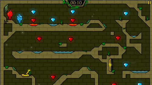 2、控制冰与火人突破重重关卡,解决谜题并收集钻石