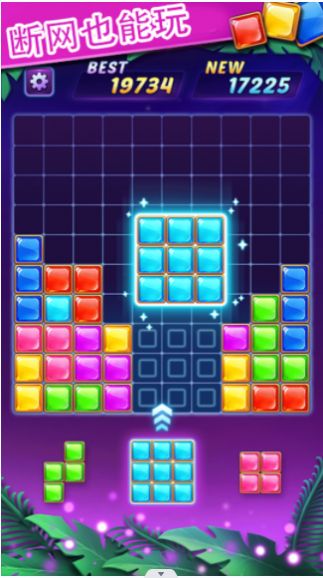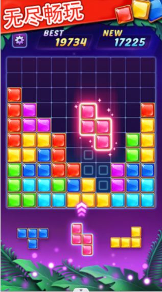 2.拖动模式:将屏幕底部的三个方块拖动到网格中。行或列填满后,您可以将其删除。移除方块,同时允许放置后续方块!变幻莫测的方块生成模式,提供紧张刺激的消除体验!