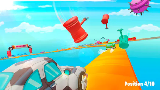 3.通过动态变化着的赛道上摔倒、翻滚并进行精准漂移,让你尽情享受驾驶快感。
