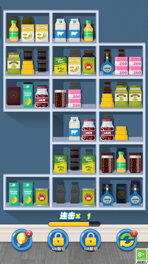 1.移除相同的容器:在游戏界面中找到相同图案的容器并将其移除。您消除的容器越多,您的分数就越高。