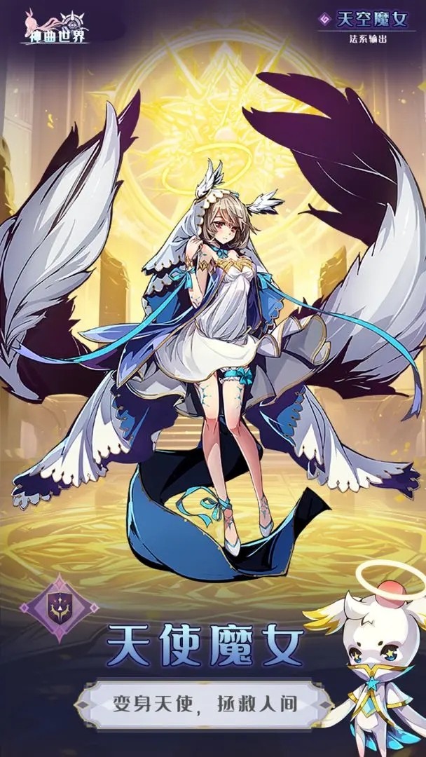 《神曲世界》是一款以神话史诗歌为主题的放置卡牌游戏。日系动漫美术风格,史诗级的放置挂机,各位冒险家可以收集近百位女神,携众神话人物一起探索全新未知的多次元世界。我们精心设置了英雄体系,使每位角色都有他的对策属性。包含法师,战士,坦克,辅助四大职业。地/水/火/风/光明/黑暗六大元素;主线之外也设置了探索特殊玩法,深渊冒险,试炼古树,BOSS挑战。未来还将上线更具心意的游戏内容,更多有趣的限时活动,请各位冒险家们尽情期待。