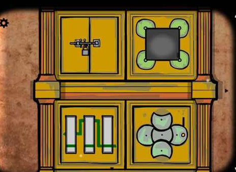 2、上了岛迅速拿到藏在房间各处的齿轮,在柜子里有撬棍,哈维的盒子里有火柴,然后完成柜子上的齿轮拼图。