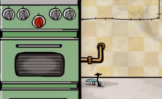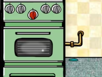 1、把钟的时间调整至3:55.打开钟门,得到扳手。用扳手去拧松燃气灶后面的管子,如下图,管子开始漏油。