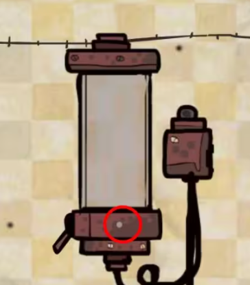 放入仙人掌果实,不用加水了(细节,可能果实自带水分了),得到果汁,把果汁倒入二号罐子并打开开关。放入蘑菇+水,得到一杯蘑菇汁,把蘑菇汁加到三号罐子里并打开开关。放入百忧解+水,得到百忧解汁,倒入四号罐子里并打开开关。去钟旁边,拉下总开关,发现电话动了。