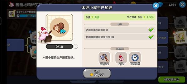 4、生产装饰:前期最稀缺的产物就属叮叮当当铁匠铺生产的各种工具,前四种工具一直都要用到尤其是斧头在解锁糖糖地精研究室之后会产生大量的空缺。