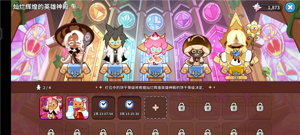2、饼干养成:由于英雄神殿的存在以及后期星星糖的稀缺,需要选择五位饼干进行主要培养,通过英雄神殿的栏位可以让其他饼干与这五位饼干里最低的等级相同(其他饼干也需要提升到三十级才能继承等级)。