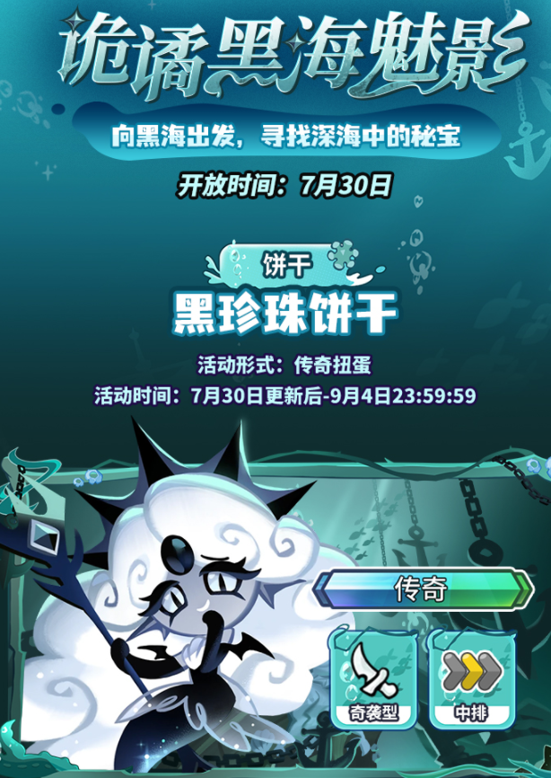 1、超级稀有【黑珍珠饼干】登场: 据说黑海能够吞噬所有的甜蜜与哀嚎,全都因为恐怖骇人黑海传说中的巨大罪魁祸首——黑珍珠饼干