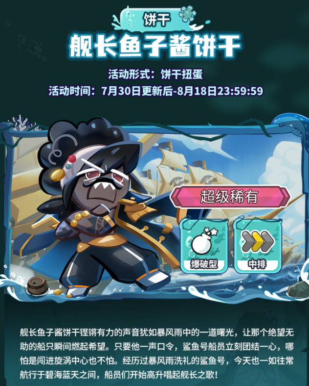 2、特别饼干扭蛋【鱼子酱饼干】 别怕滔天巨浪,相信我就对了!舰长鱼子酱饼干铿锵有力的声音犹如暴风雨中的一道曙光,让那个绝望无助的船只瞬间燃起希望。