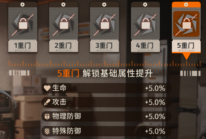 还有一个最抽象的是角色的门阶,跟很多游戏的都不一样,没有出现满命质变,最高有5重门,1.3.4重门加机制,2.5重门加面板,没错,第五重门居然是加面板。。。太抽象了,当然也可以说良心,4重门机制就吃满了。
