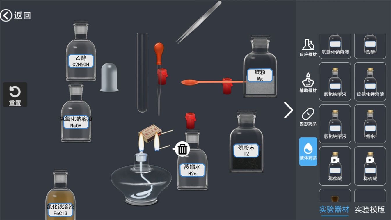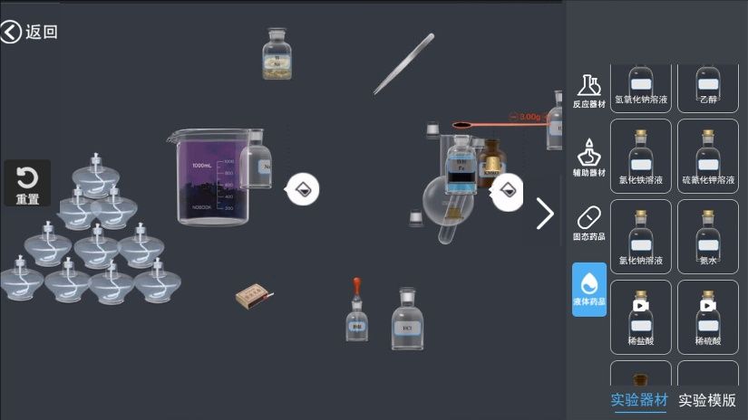 2、模拟了真实的化学实验过程,可以按照实验步骤,使用不同的器材和试剂。