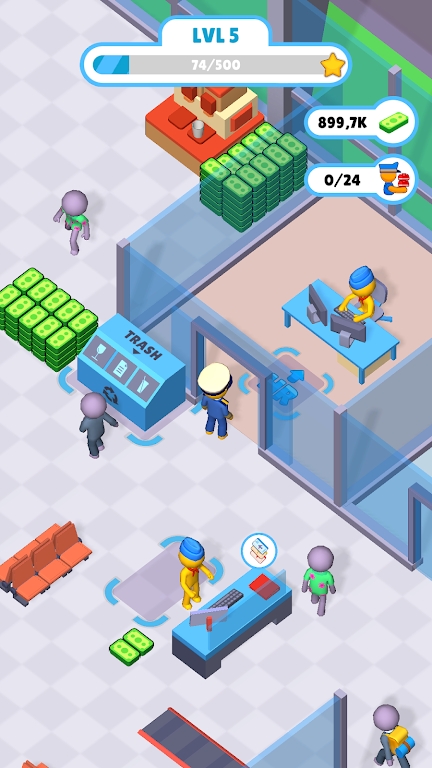 【沉浸式场景体验】4K级场景渲染技术打造昼夜交替的机场生态,晨雾中的跑道、雨夜的航站楼灯光均呈现物理级光影效果。动态NPC系统让旅客产生真实行为模式,商务客会优先选择头等舱休息室,家庭游客则倾向儿童游乐区。特别设计的"旅客故事"系统,让玩家通过服务解锁不同背景旅客的旅行日记。