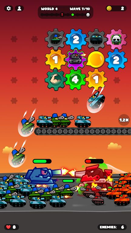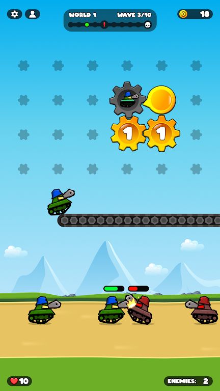 你的坦克将自动射击,在激烈的战斗中击溃一波又一波的敌军。生产的坦克越多,你的军队就越强大。你会专注于精准的战术策略,还是用数量优势席卷战场,彻底压制敌人?