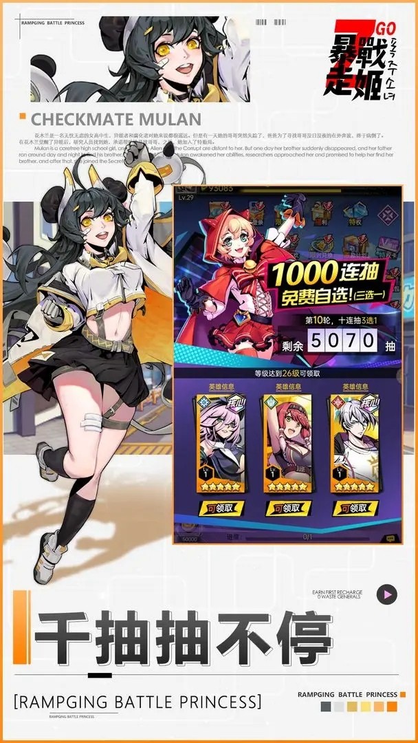 3、丰富多样的副本探索:游戏中有各种精心设计的关卡和敌人,挑战并获得丰厚奖励,通过解锁二次元角色组建强力战队。
