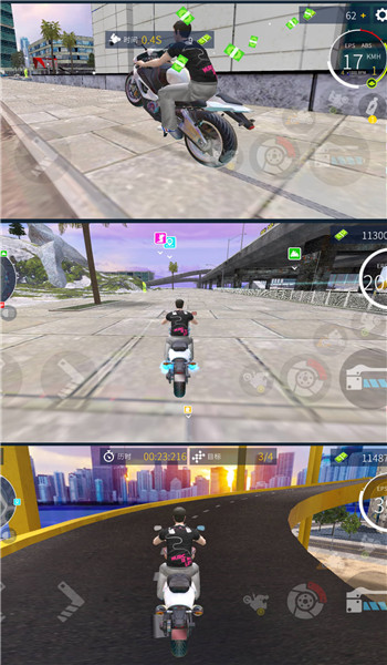 3、解锁全新的摩托车型号、自定义外观和特殊技能,成就属于自己的传奇记录与荣誉奖杯。