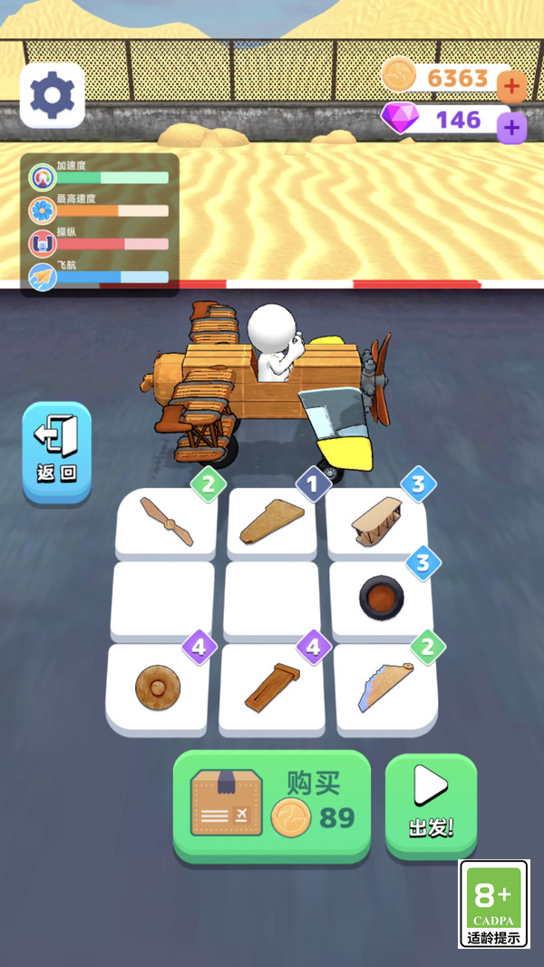 从零开始,选择不同的机翼、引擎和配件,自由组装你的专属战机。调整配置,提升速度、稳定性和耐久度,打造最强飞行器!