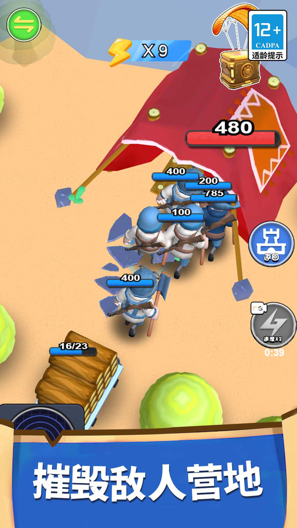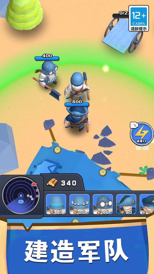 加入暴走军团进入危机四伏的荒岛,打造自己的最强大的军团!在暴走军团里面带领士兵,砍伐收集木材资源,建造强大的军队,打败每一个敌方士兵,还能不断的扩大军团队伍!而且在暴走军团里面玩家能够占领敌方大本营,并且合成升级士兵和板车等级全方位提升自己的军团实力,加入小岛争霸的队伍!