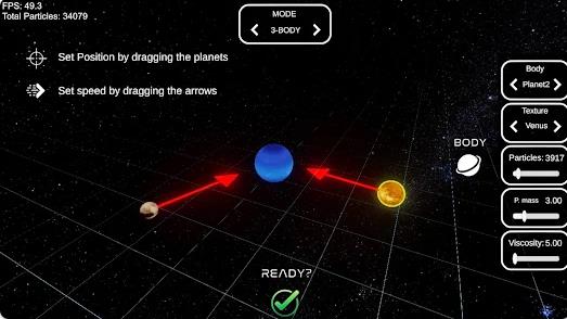 2、在设置模式中调整质量、速度、轨道和粒子数量等参数。