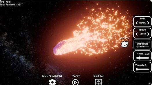 行星碰撞模拟器(Space Crash Simulator),模拟了科幻的太空行星场景,玩家们可以操控其中,让各种的行星相撞,为您模拟酷炫的撞击特效,玩起来会十分的解压,同时还有着真实的移动画面,科幻迷们一定会爱上这里,玩家们还能够调整其中的各种参数!