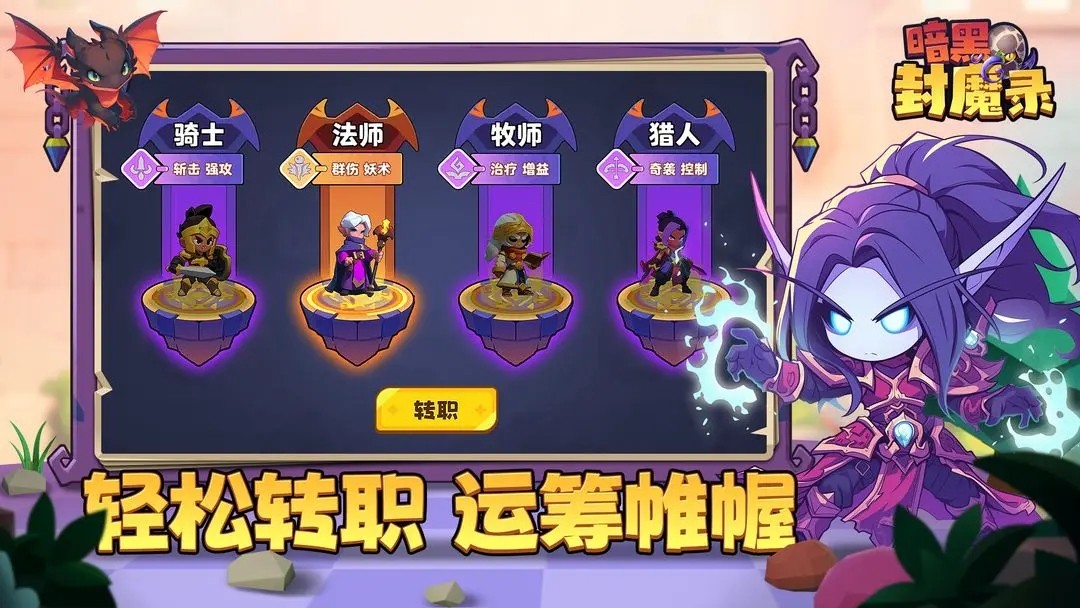 1.职业选择:玩家可以在骑士、法师、牧师、猎人四种职业中自由选择,每种职业都有其独特的技能和战斗风格。