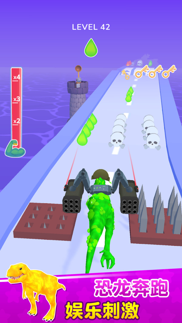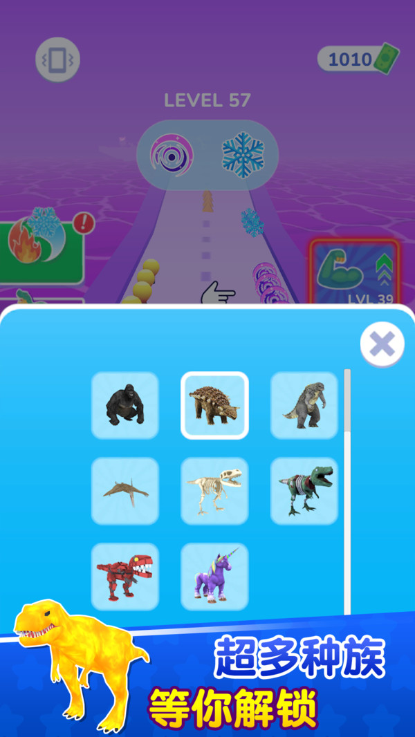 1、通过收集道具和完成任务,恐龙可以不断进化,提升速度、力量和特殊能力。