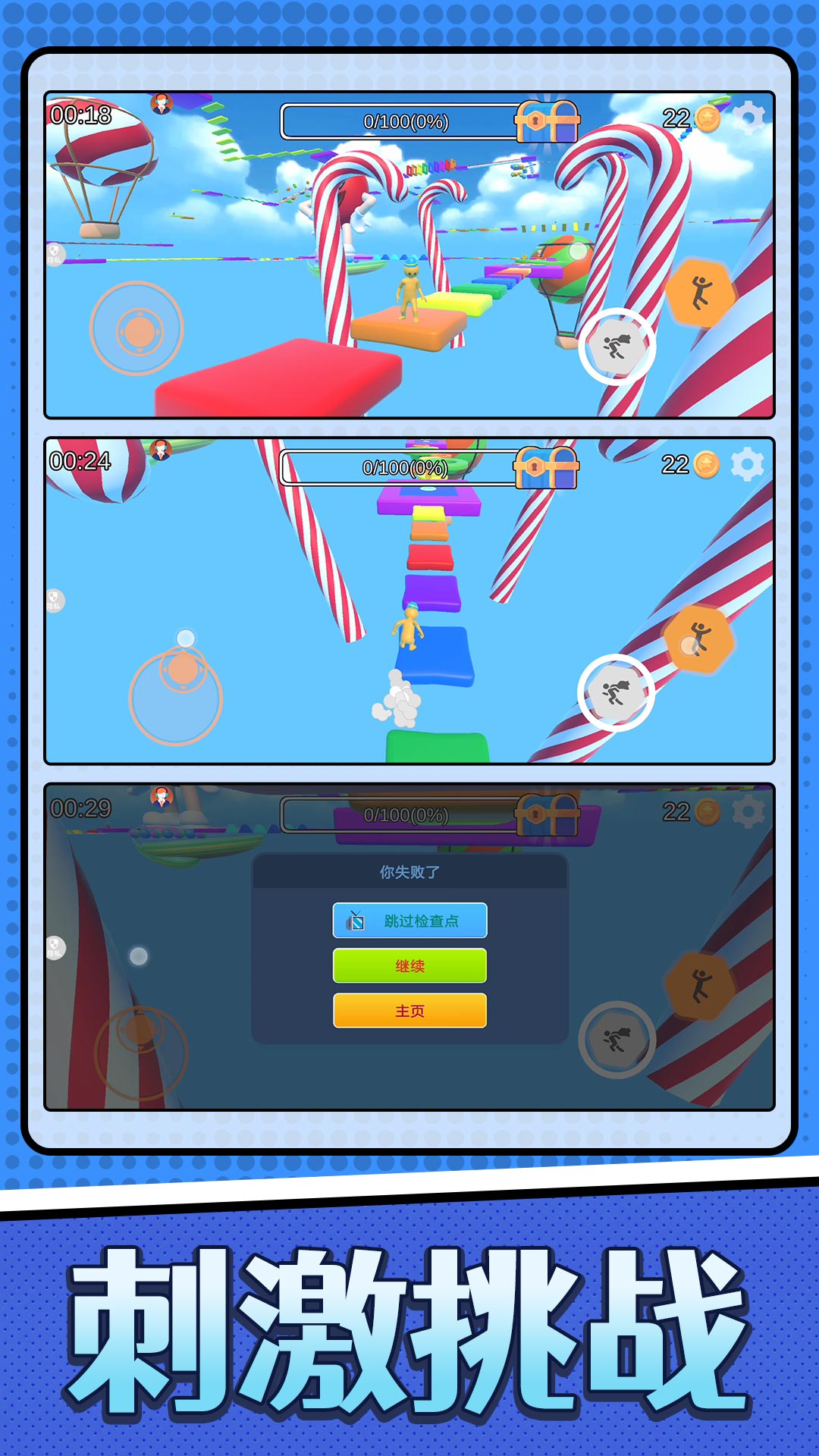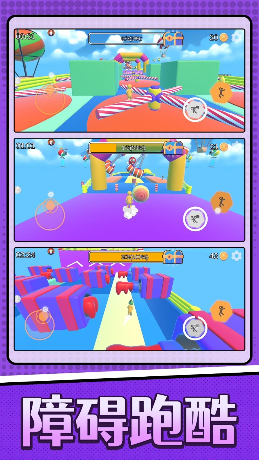 参与各种趣味的操作,解锁多个不同的道具来进行跑酷冒险,获取胜利。