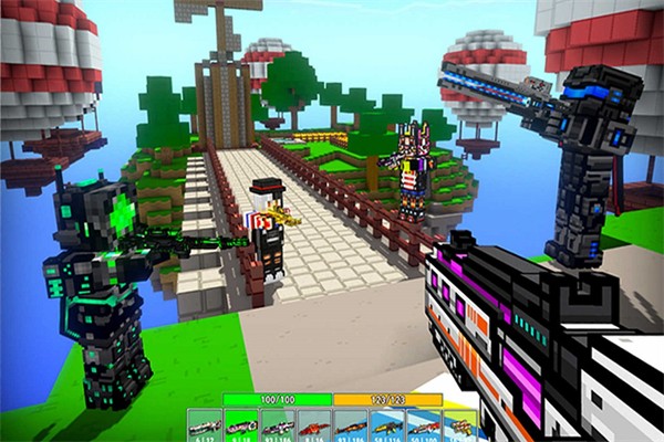 像素射击是一款射击战斗游戏。游戏中玩家将以第一人称视角进行操控战斗,在各种地形场景内与其他玩家进行对战,借助地形和队友的配合,尽可能为队伍获得更多胜利。游戏内武器装扮以及角色皮肤很是丰富,玩家都可以解锁为自己使用,在对战时其他玩家也能看到自己的外观。游戏支持沙盒编辑功能,玩家可以自由设计皮肤、道具、武器和地图,展现自己的创造力。