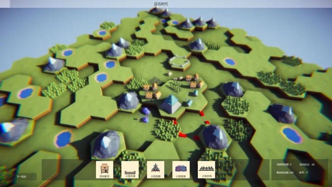 * **时代晋升,文明演进:** 从蛮荒时代到未来科技,你的大陆将经历2个时代的变迁!每个时代都会解锁全新的地块、建筑和随机事件,带来更丰富的策略选择和更宏大的发展目标。合理规划发展路线,引领你的文明走向繁荣!